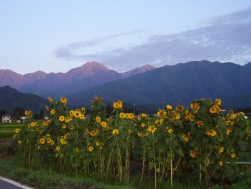 梅雨が明けたら、ガンガンの日射だ。 それでも日の出前の安曇野は香り立つ風が吹く。 久しぶりに常念岳が静かに姿を現し、もうすっかり夏の山だ。 雪は谷間に少し、常念岳と横通岳の鞍部の雪田は点になった。 常念からなだらかな稜線を左へ視線を移していく…