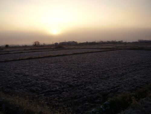 敷石にする石を探して野道を行き、開墾時に出てきた石の野積みから平らな面のあるのを見つけて、一輪車に積んで帰ってくる。 大きい石は一度に5個ぐらいが運ぶ限度だ。 道路から工房までの10メートルほどの地面を少し掘って、これらの自然石を平らな面をつ…