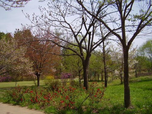 ランを連れて、洋子とアルプス公園へ行った。チューリップの花が見ごろで、区分けされたエリアに各種、各色の花が整然と植えられていて、それなりに美しい。でもやはりいちばん美しいのは、雪の山岳で、そして芽吹きの木々だった。 園内にドッグランがつくら…
