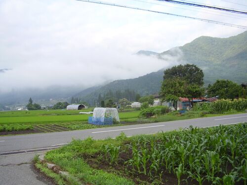 見渡す限り輝く緑 大地から噴き出す緑。 「野のベンチ」の横に、もう一本、ムクゲを植える。 ツルハシを持っていって、植え穴を掘り、 背丈近くまで生長していたムクゲを 手押し車に乗せて運び、 穴に土付きの根っこを入れた。 周囲の土をかぶせて、足で軽く…
